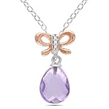 Sterling Silver Rose de France and Diamond Bow Shaped Pendant with Chain, (.009 cttw,G-H Color, I3 Clarity), 18"